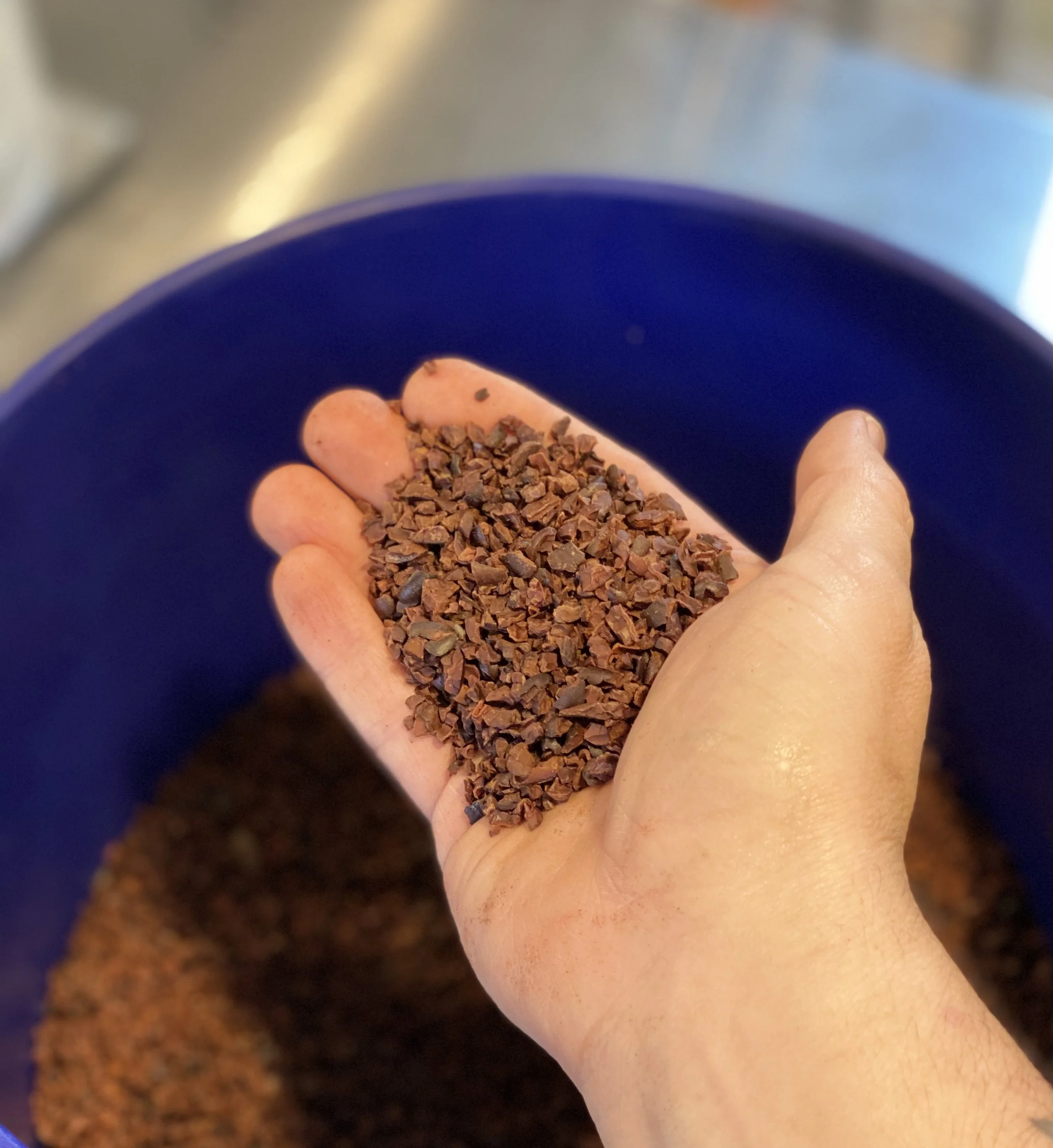 Once roasted and cooled, the beans are gently cracked and winnowed, a process that separates the outer husk from the inner nibs using controlled bursts of air. The nibs continue on to become chocolate, while the husks are repurposed into a fragrant cacao tea.