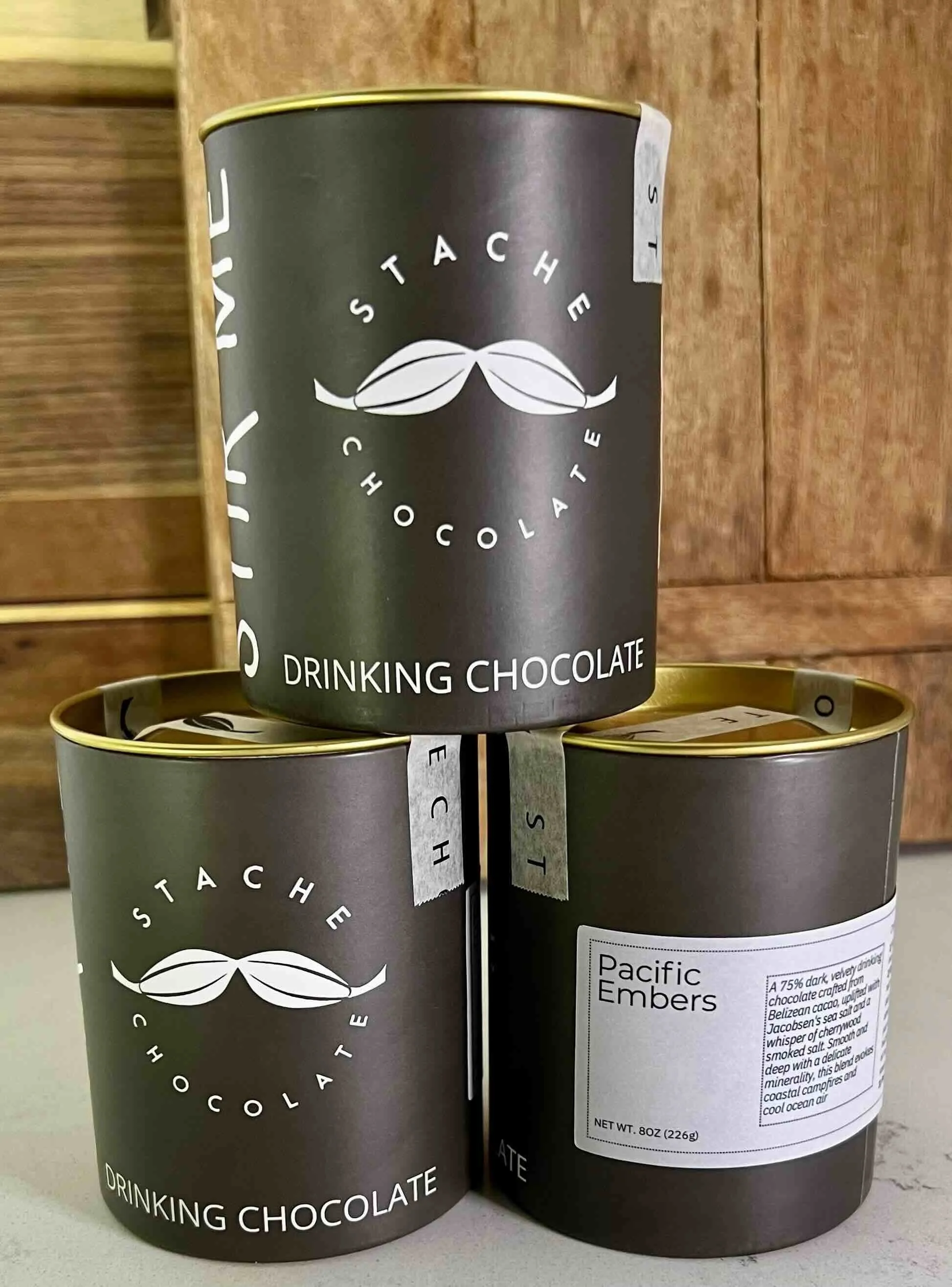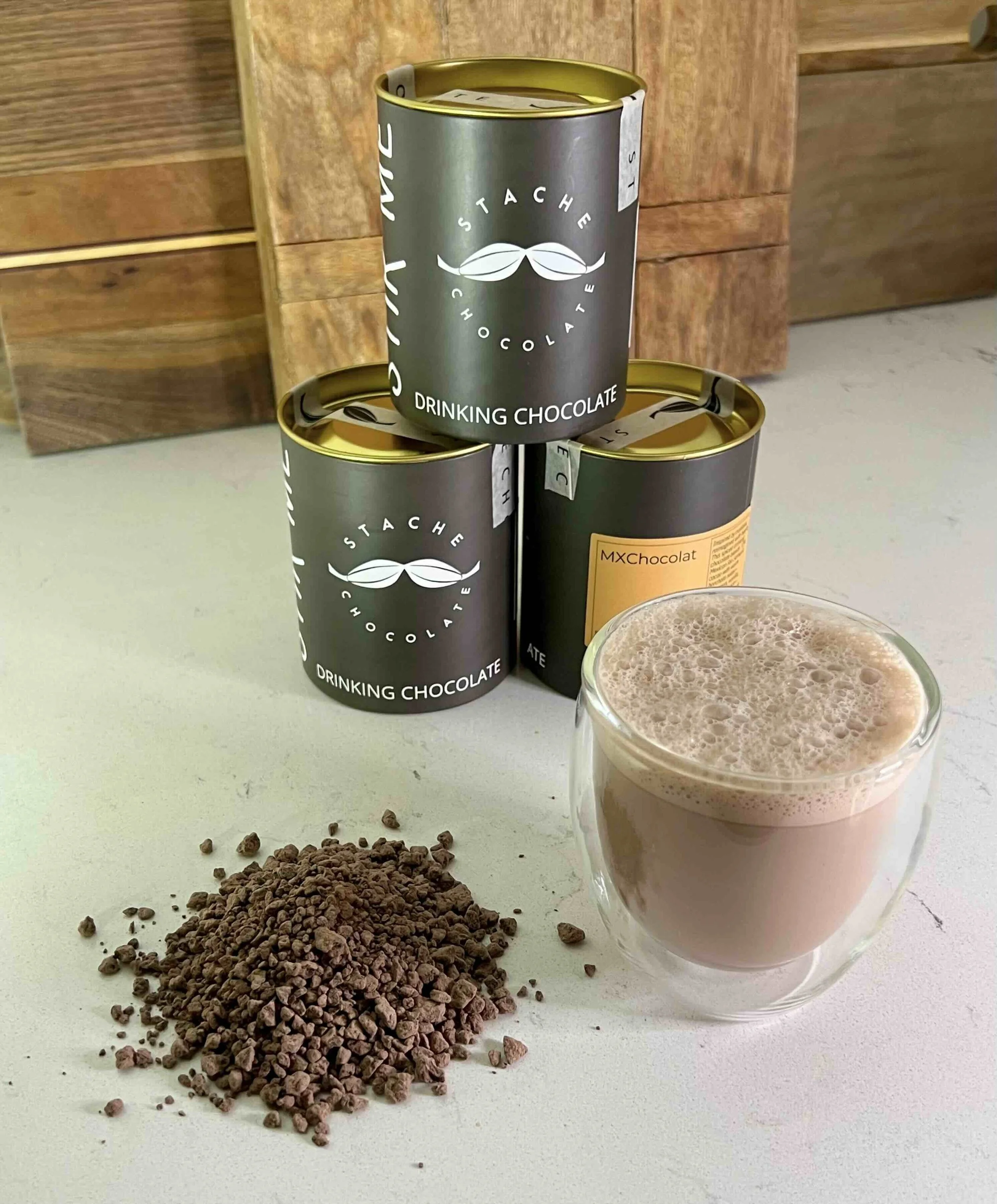 Our drinking chocolate starts exactly the same way as our bars — with carefully chosen cacao beans from remarkable origins and flavor pairings that are anything but ordinary. We craft the chocolate as we would any bar: roasted, refined, and balanced with intention. Then, instead of molding, we grind it into small bits. The result is chocolate in its purest, most versatile form — ready to whisk into warm milk or water for a rich, velvety cup. Each sip carries the same character, depth, and creativity you’ll find in our bars, now melting right into your mug.